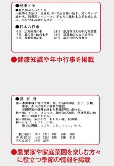健康メモから行事、農事暦など多彩な暦情報を掲載