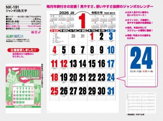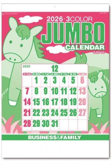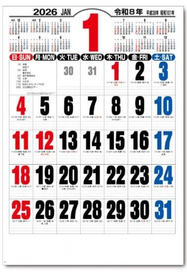 毎月年表付きの定番!見やすさ、使いやすさ抜群のジャンボカレンダー