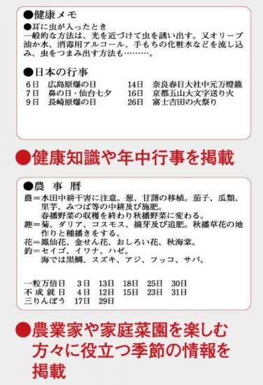 機能性を重視し、健康知識や年中行事、季節の情報など