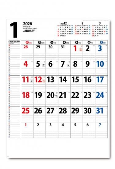 FREE MEMOスペースがついた、便利な6週表示の文字月表